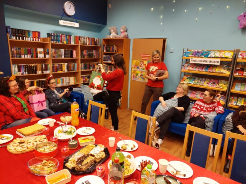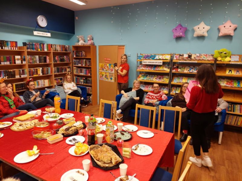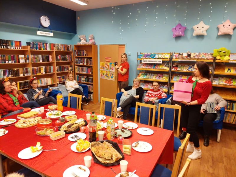 3 grudnia biblioteka Siódemki z okazji zbliżających się Mikołajek zorganizowała spotkanie czytelnicze Prawdziwa historia Świętego Mikołaja. Na wydarzenie zaproszono pierwszoklasistów przebranych za elfy. Dzieci poznały legendę o Świętym Mikołaju. Dowiedziały się również, kto obdarowuje dzieci prezentami w innych krajach. Uczniowie odbyli magiczną podróż do śnieżnej Laponii - krainy Świętego Mikołaja. Zwiedziły wioskę, port, pocztę i fabrykę zabawek. Wysłuchały opowieści o pomocnikach Mikołaja, elfach i reniferach, bez których trudno wyobrazić sobie święta. Kulminacyjnym momentem spotkania było dostarczenie do biblioteki tajemniczej przesyłki z dalekiej Finlandii. Dzieci otrzymały list od Świętego Mikołaja i pierniczki upieczone przez Panią Mikołajową. Z okazji Mikołajek biblioteka obdarowała dzieci prezentami. Uczniowie otrzymali zakładki, medale i świąteczne mini notatniki do zapisywania list swoich wymarzonych prezentów. To było niezapomniane spotkanie pełne radości, ciepła i magii świąt