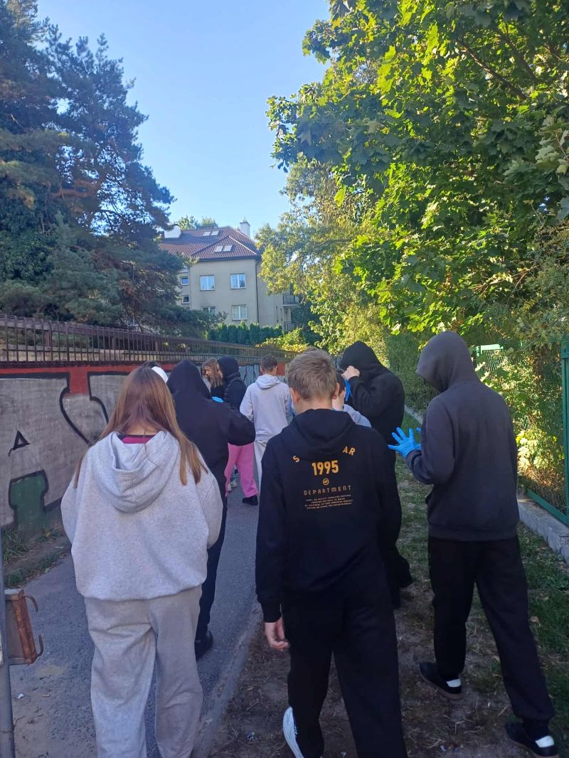 Uczniowie oddziału 7e włączyli się w tegoroczną akcję „Sprzątanie świata”. Wspólnie porządkowali pobliski teren wokół szkoły, pokazując, że troska o środowisko zaczyna się od małych kroków. To ważne działanie proekologiczne przypomina nam wszystkim, że Ziemia jest naszym domem, dlatego dbajmy o nią każdego dnia.