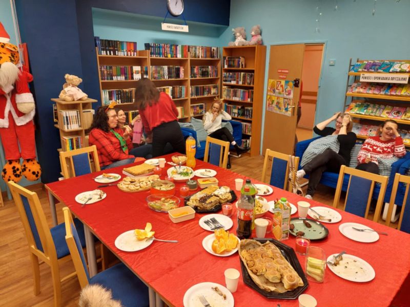 3 grudnia biblioteka Siódemki z okazji zbliżających się Mikołajek zorganizowała spotkanie czytelnicze Prawdziwa historia Świętego Mikołaja. Na wydarzenie zaproszono pierwszoklasistów przebranych za elfy. Dzieci poznały legendę o Świętym Mikołaju. Dowiedziały się również, kto obdarowuje dzieci prezentami w innych krajach. Uczniowie odbyli magiczną podróż do śnieżnej Laponii - krainy Świętego Mikołaja. Zwiedziły wioskę, port, pocztę i fabrykę zabawek. Wysłuchały opowieści o pomocnikach Mikołaja, elfach i reniferach, bez których trudno wyobrazić sobie święta. Kulminacyjnym momentem spotkania było dostarczenie do biblioteki tajemniczej przesyłki z dalekiej Finlandii. Dzieci otrzymały list od Świętego Mikołaja i pierniczki upieczone przez Panią Mikołajową. Z okazji Mikołajek biblioteka obdarowała dzieci prezentami. Uczniowie otrzymali zakładki, medale i świąteczne mini notatniki do zapisywania list swoich wymarzonych prezentów. To było niezapomniane spotkanie pełne radości, ciepła i magii świąt