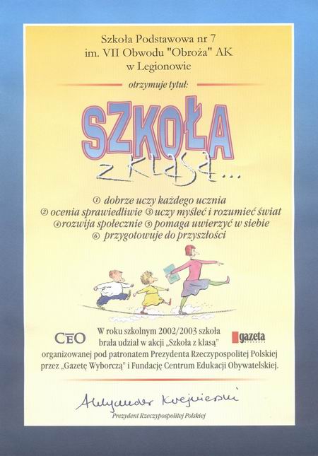 JESTEŚMY SZKOŁĄ Z KLASĄ!!!